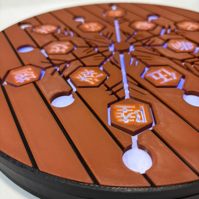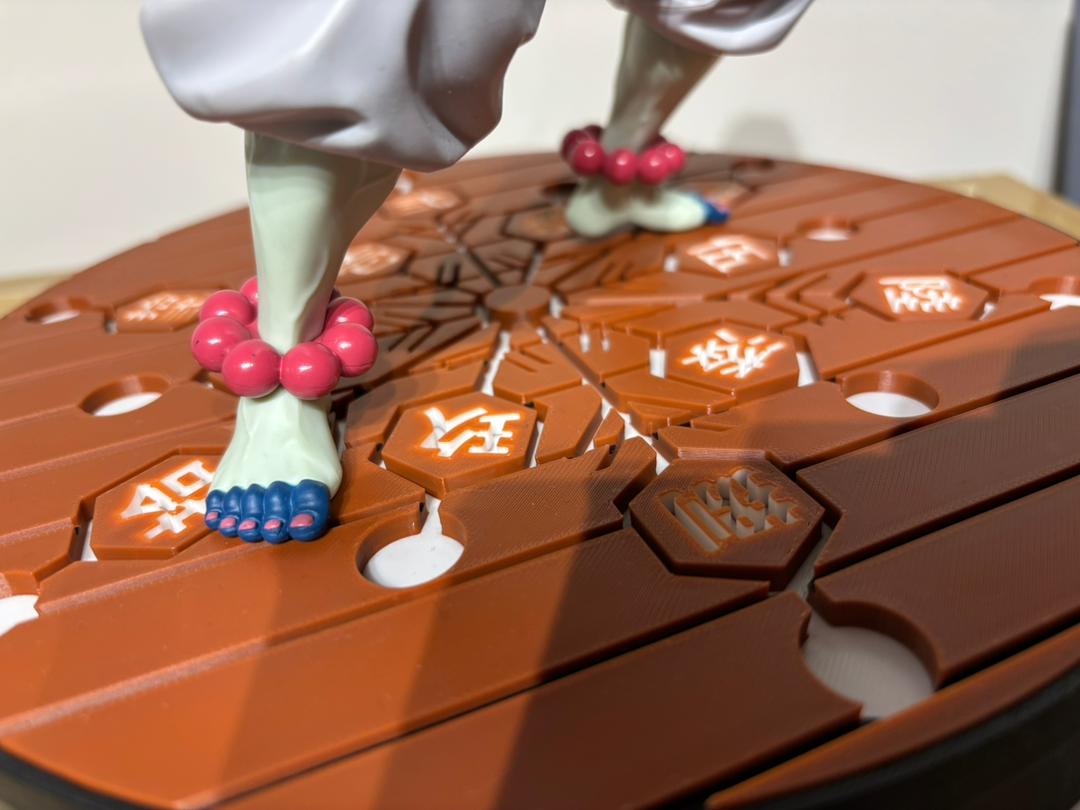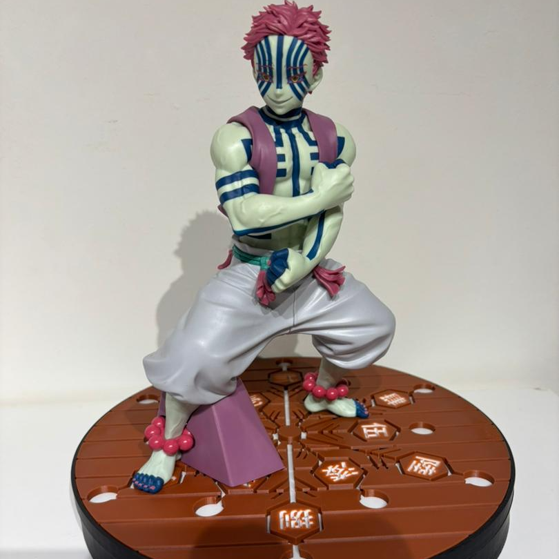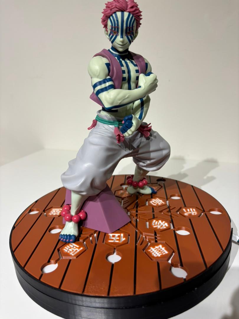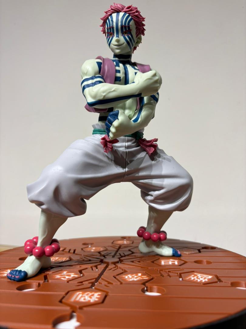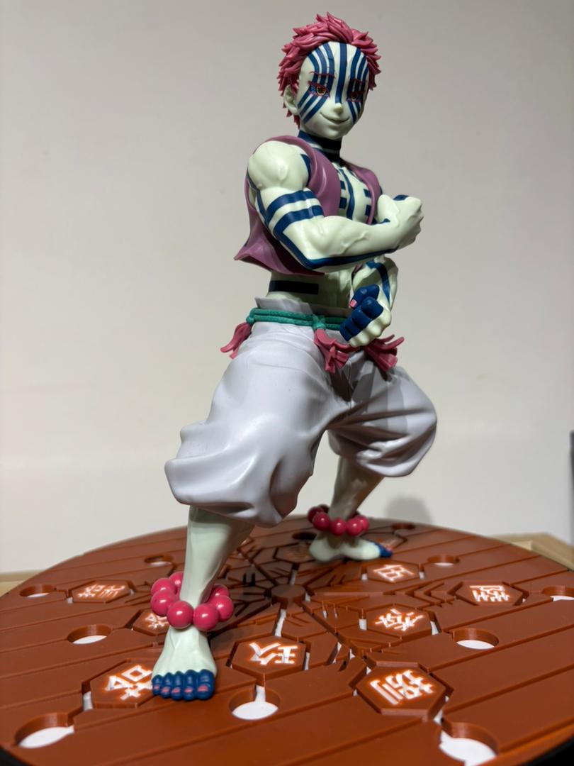 Feature: When Akaza stamps his feet on the ground, a circular energy pattern resembling snowflakes or ice crystals appears beneath him.