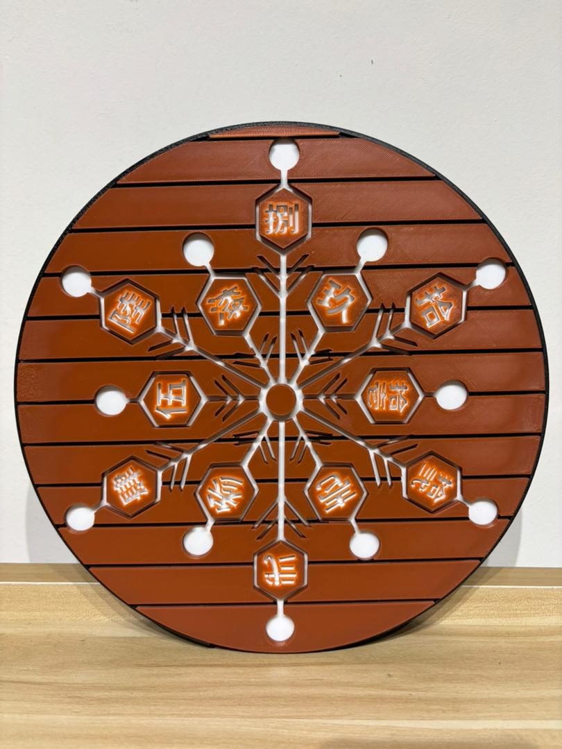 The snowflake- or crystal-like appearance visually represents the calm, precision, and flow of energy within the technique.
